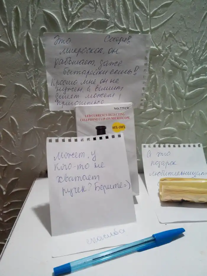 Вот что значит – дружные соседи. На щитке в подъезде женщина оставила в подарок микроскоп с запиской – авось кому-то пригодится. Ее поступок стал началом флешмоба: вскоре на том же месте появись и другие «пожертвования» с записочками. Хорошо ведь, когда живешь с соседями в мире.
