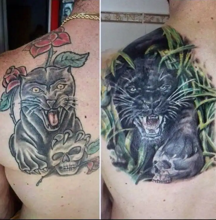 Во многих случаях людям нравится изначальная задумка татуировки, но не нравится исполнение. И хороший мастер способен это исправить. Хотя в большинстве историй это всё то же рисование новой татуировки поверх старой, прежним остаётся только изображённый персонаж или объект. Оно и к лучшему.