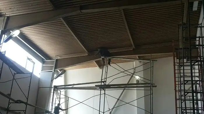 Как лучше всего обезопасить свою жизнь во время строительства потолка? Конечно же забраться на хилую кривую конструкцию. Видимо таджики – большие мастера своего дела. Вот только пример с них не берите.
