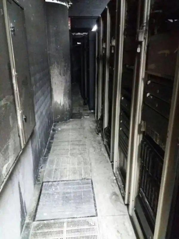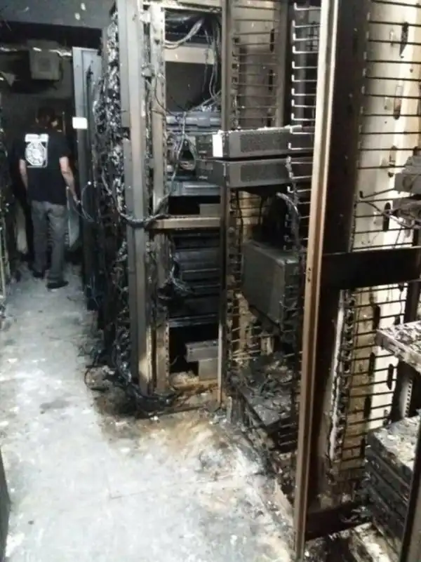 Перед вами последствия серьезного пожара, случившегося в серверной комнате дата-центра. Пламя нанесло значительный ущерб и теперь на восстановление работоспособности придется серьезно потратиться.