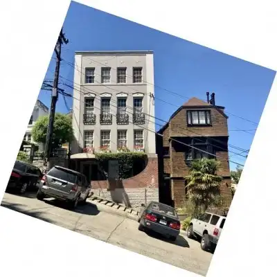 Нет, эти дома не падают, просто улица с крутым подъемом, а фотограф повернул камеру