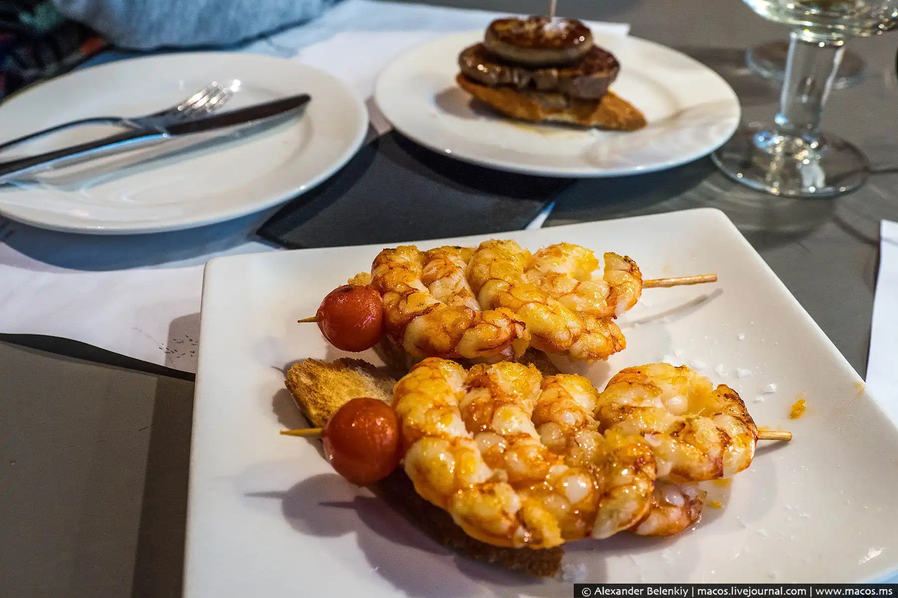 Сочетание блюд иногда бывает странным. Креветка, осьминог и внезапно буженина внизу "бутерброда".