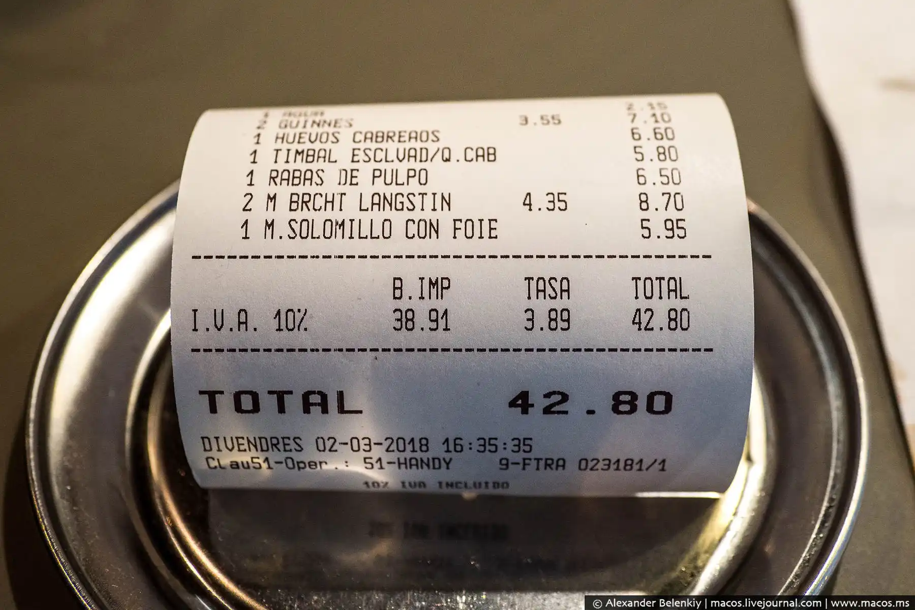 Меня просили рассказывать о ценах - показываю чек, на двоих поели на 43 евро (с пивом), это 3 тысячи рублей.