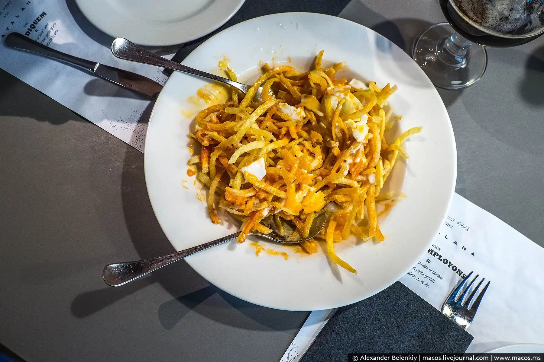 Обязательно закажите местную разновидность картошки фри, смешанной с яичницей-глазуньей. Не знаю, как блюдо называется по-русски, но на английском это cabreaos egg style.