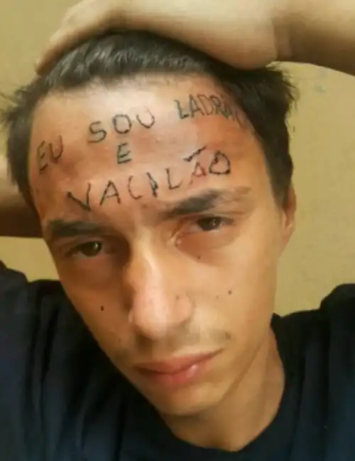 В Бразилии на краже в супермаркете попался молодой человек, на лбу которого была набита татуировка «я вор и идиот». 18-летний Руан Роча да Силва (Ruan Rocha da Silva) обзавелся этой татуировкой летом прошлого года, когда ему принудительно набили ее двое парней, заметивших его за кражей велосипеда.