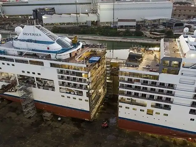 В марте текущего года компания Silversea увеличила вместимость круизного лайнера Silver Spirit с 540 до 608 пассажиров, удлинив его корпус на 15 метров. Для этого судно прибыло на верфь Финсантьери в Палермо, где 10 марта его разрезали на две части, вставив между ними предварительно построенную третью часть. Все работы были проведены с восхитительной точностью, после чего команда приступила к перепланировке внутренних помещений. Весь этот процесс был запечатлен на фото, которые ждут вас далее.