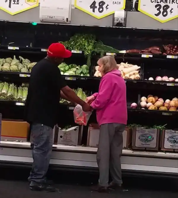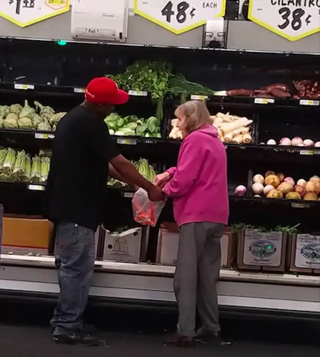 Этот парень помог пожилой женщине с покупками. Маленький, но очень ценный акт доброты