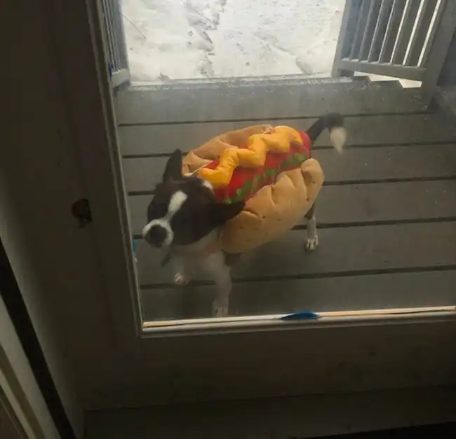 «Наш пес настолько маленький, что может убежать сквозь забор. Поэтому он носит этот „костюм позора“ каждый раз, когда его отправляют сделать свои дела во дворе»