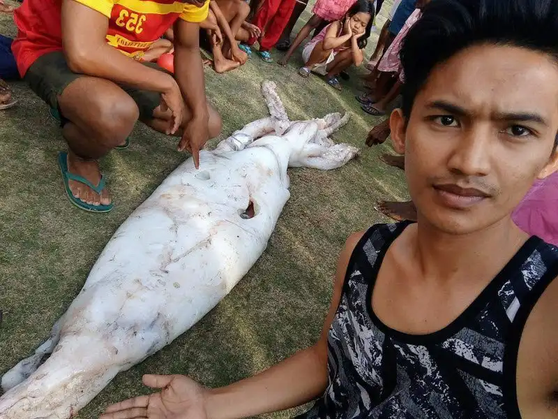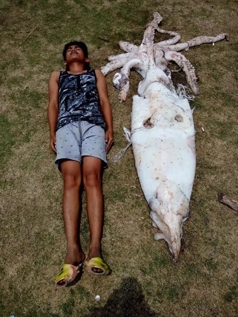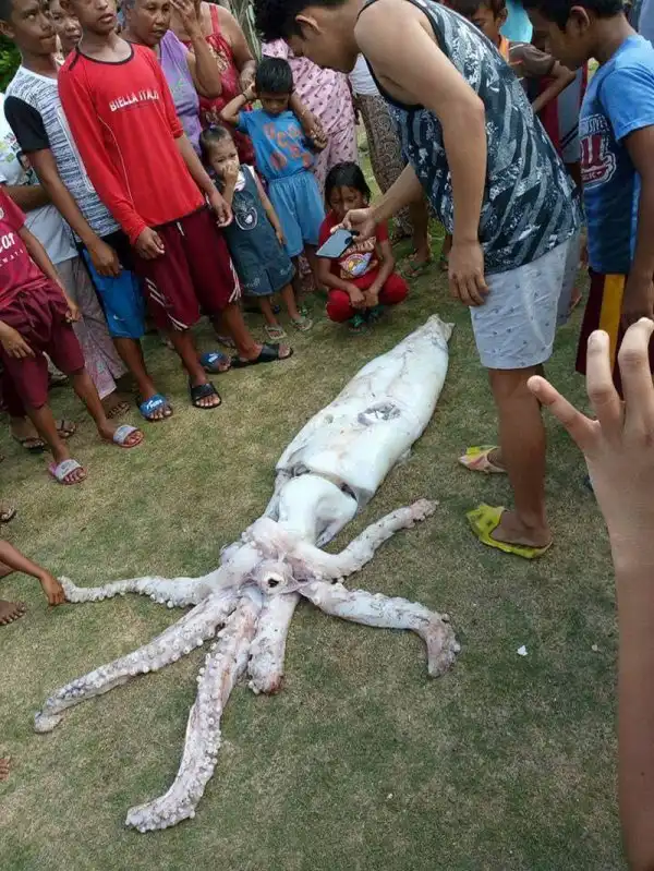 Филиппинский рыбак поймал 2,5-метрового кальмара и подарил его жителям деревни