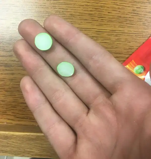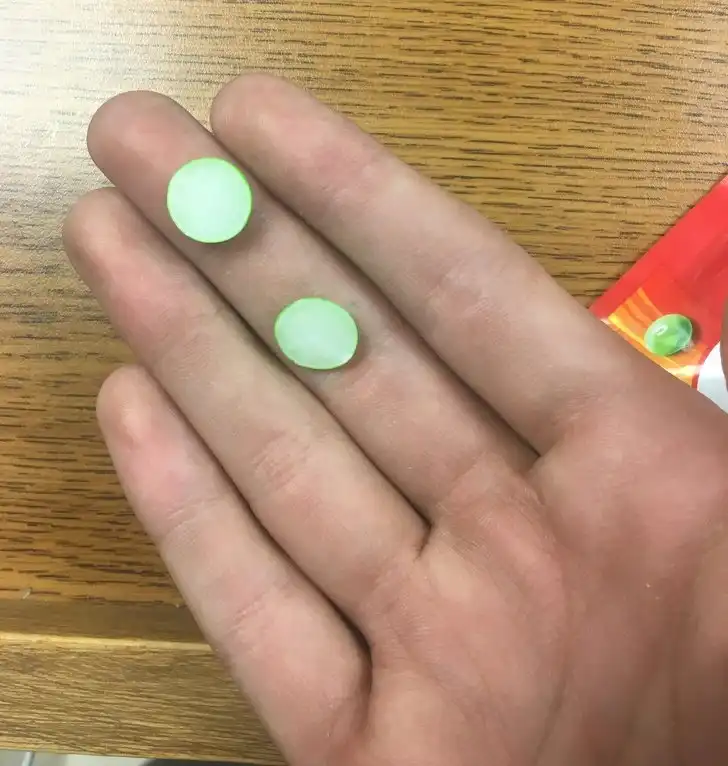 Конфета Skittles упала и раскололась пополам