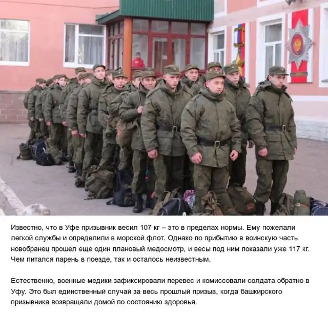 Курьезный случай произошел с призывником из Башкирии, который так не хотел идти в армию, что набрал 10 кг по пути к месту несения службы.