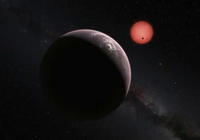Воображаемый вид на три планеты, вращающиеся вокруг ультра-холодного карлика в 40 световых годах от Земли