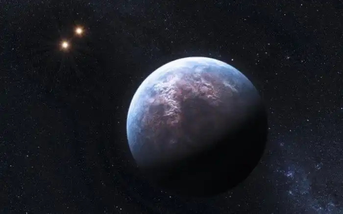 Вращающаяся вокруг двойной звезды планета Кеплер-16б, первая планета про которую мы точно знаем, что она вращается вокруг двойной звезды. Ее поверхность газообразна и явно непригодна для жизни
