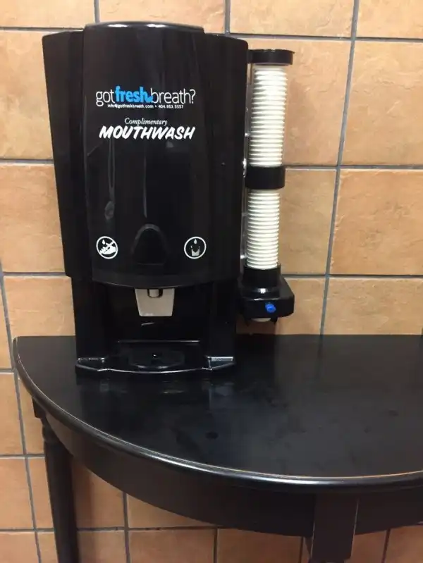 В туалете этого ресторана есть бесплатный кулер, чтобы посетитель мог прополоскать рот после еды