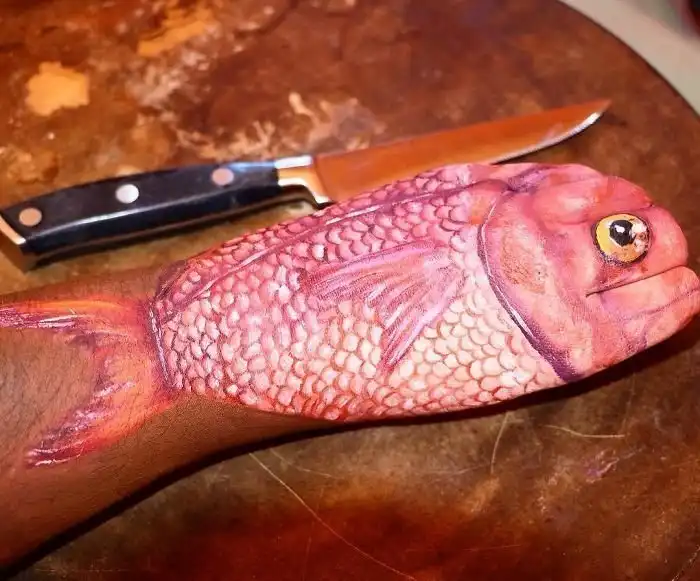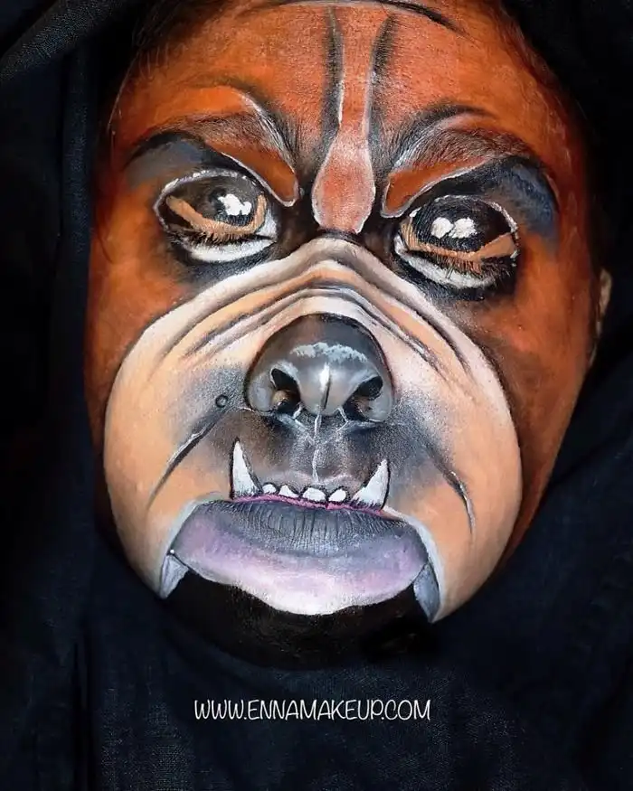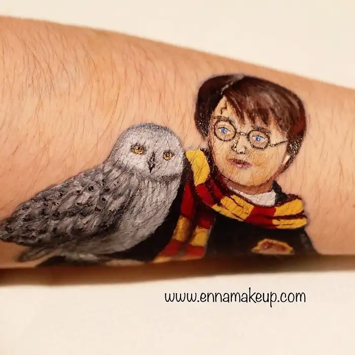 Художница и визажистка Элена Мартини живет на севере Италии. С детства она прикована к инвалидной коляске. Это не помешало ей овладеть искусством живописи и визажа. Элена создает великолепные рисунки на теле, которые позволяют ей перевоплощаться в иных существ, забывая об инвалидности.