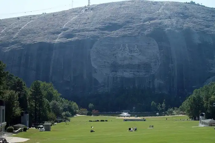Гранитный монолит высотой 250 метров имеет более 8 км. в окружности. Гору украшает крупнейший в мире резной барельеф «Мемориал Конфедерации», имеющий площадь около 12000 кв.м.