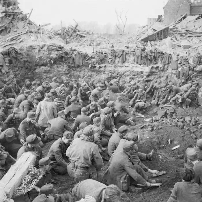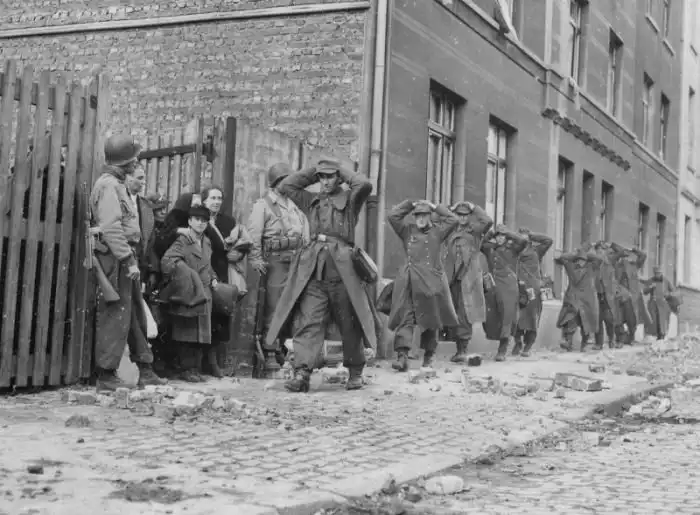 На этих исторических фото запечатлены немецкие солдаты и офицеры, которые массово сдаются в плен, когда от былого величия Третьего рейха не осталось и следа.