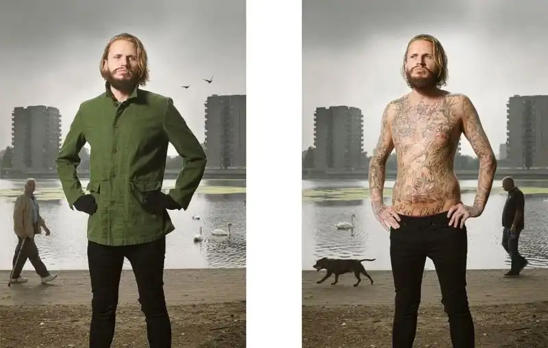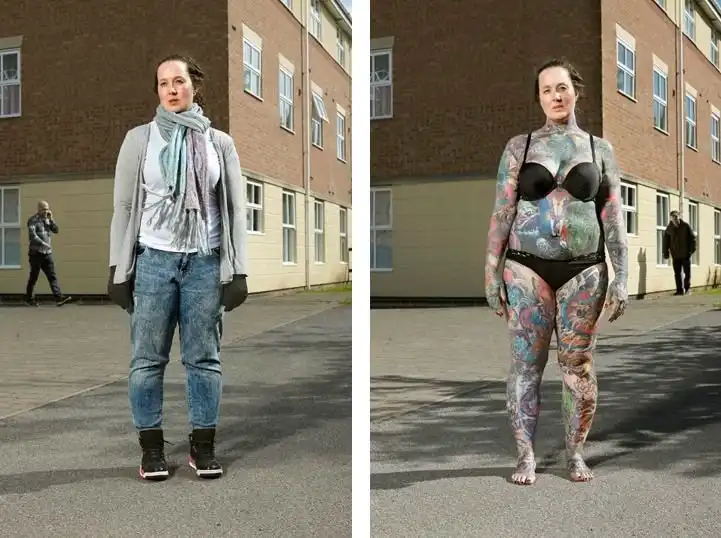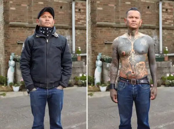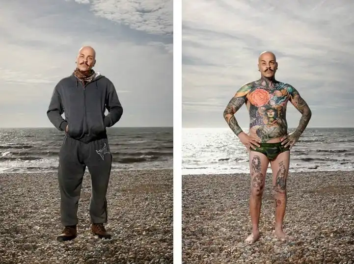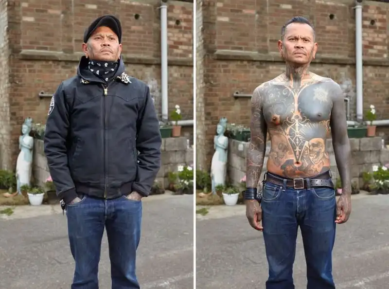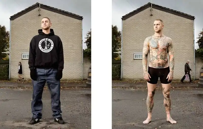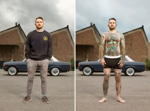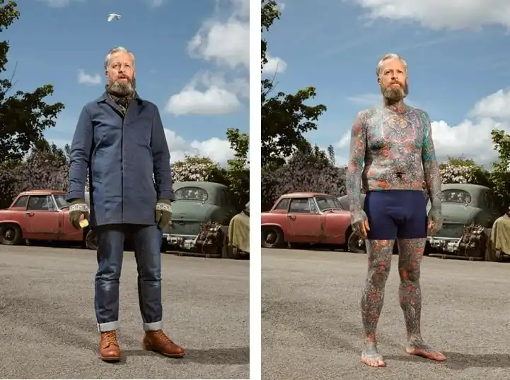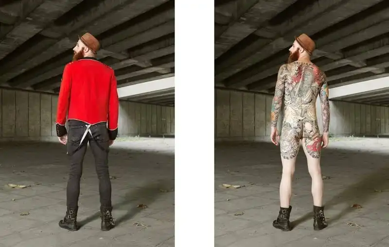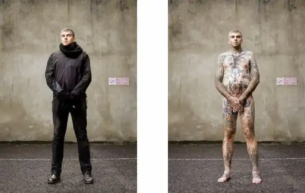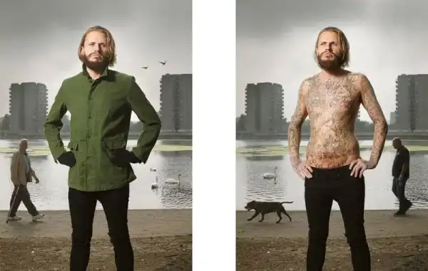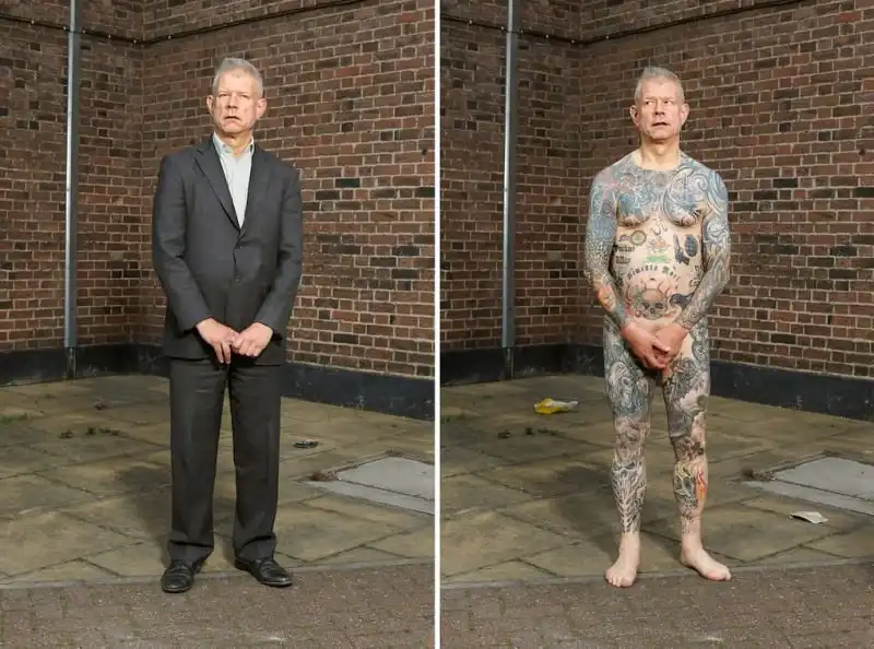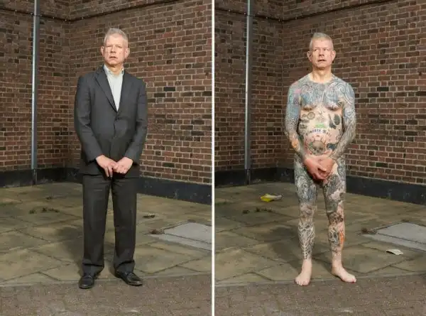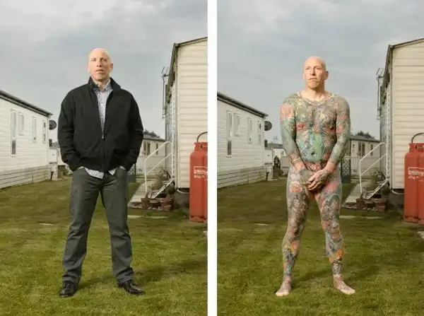 Вот уже три года британский фотограф Алан Паудрилл продолжает работу над своим проектом "COVERED". Он снимает татуированных людей в одежде и нагишом. Его фото удивляют, ведь под костюмами солидных дядь и ботанов скрываются татуировки на все тело.