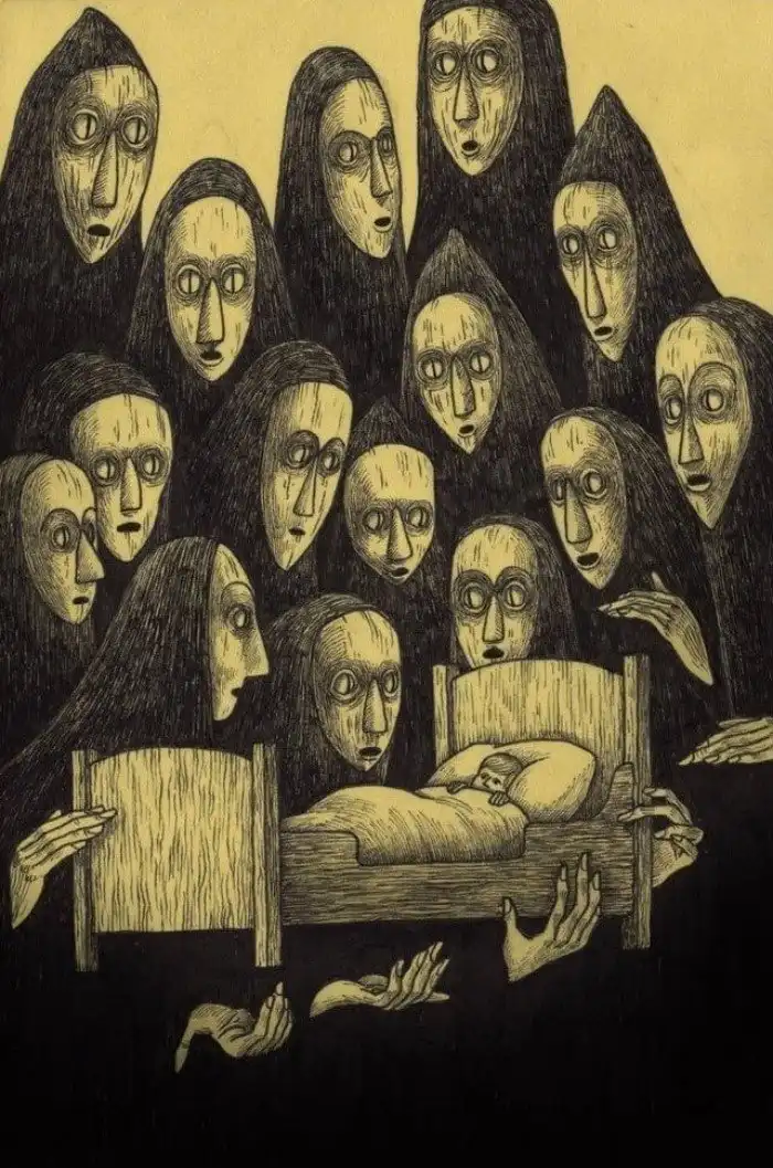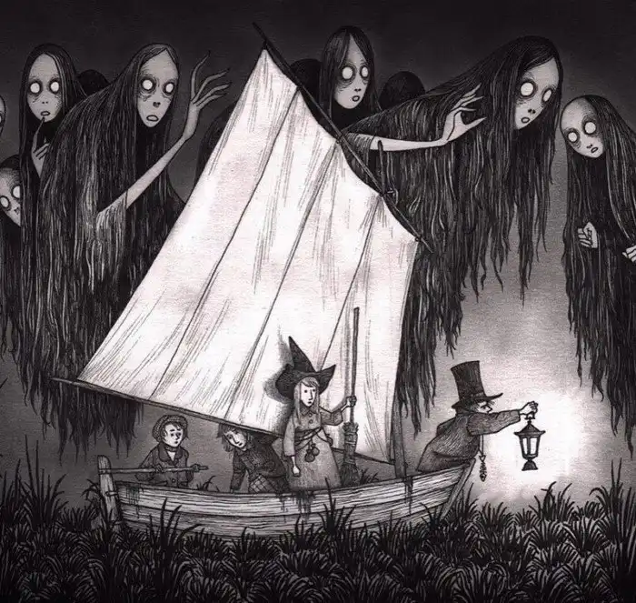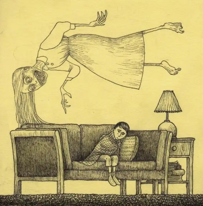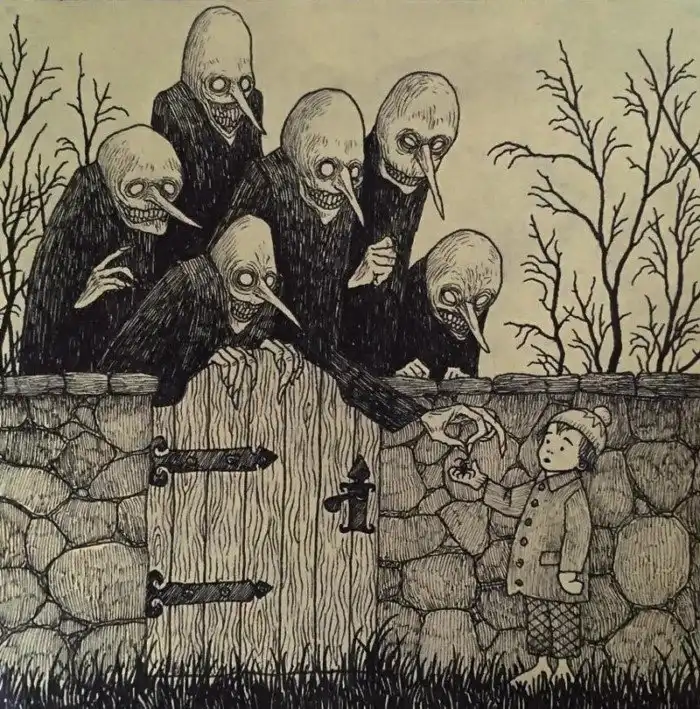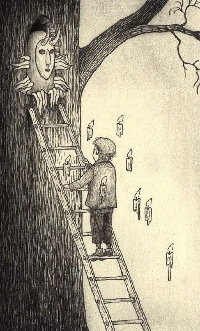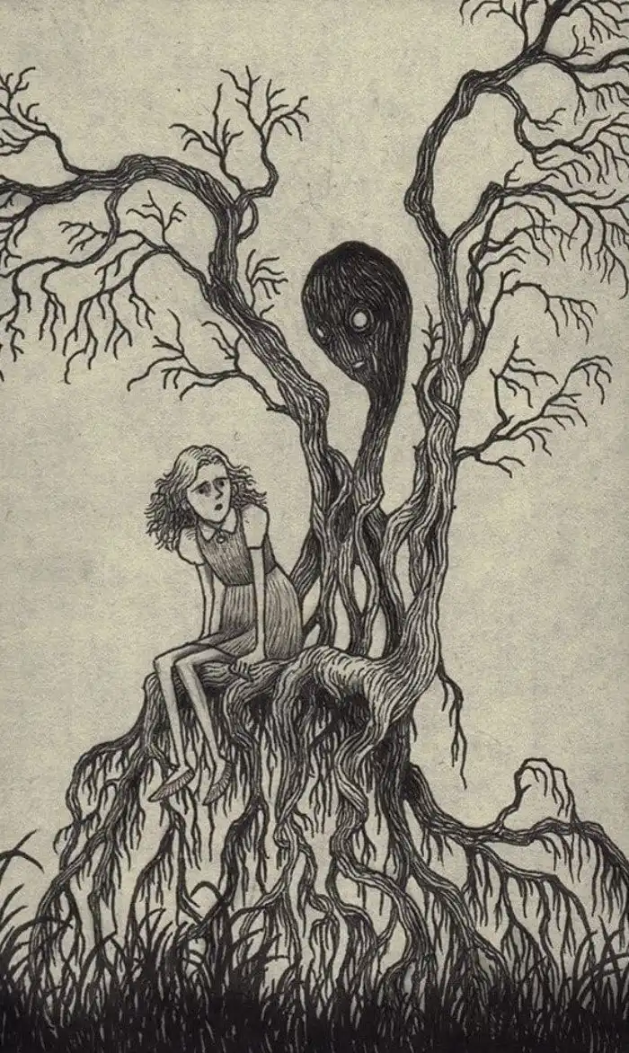 Мрачный чёрно-белый мир его работ протянет к вам свои чёрные щупальца и утащит к себе с первого рисунка, а от особой жуткой атмосферы побегут мурашки. А перед сном придётся включить свет во всех комнатах и покрепче обнять кота (или кого вы там обнимаете), потому что кто его знает, от чего так скрипит половица в коридоре.