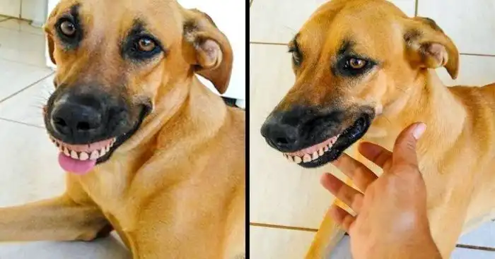 22. Пес случайно нашел и примерил зубные протезы. У хозяина от смеха случилась истерика