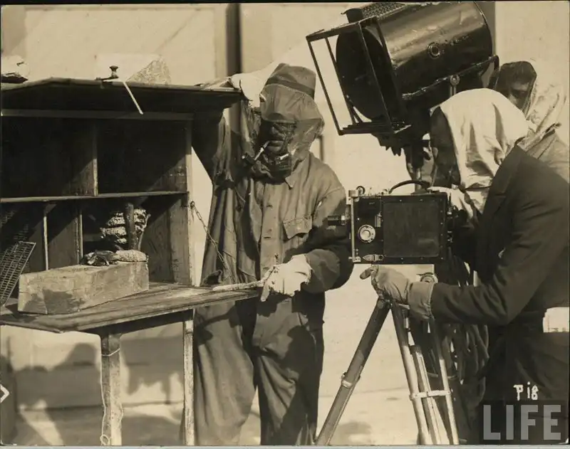 Для рядового человека, никак не связанного с индустрией шоу бизнеса, кинематограф всегда оставался некоей магией, чуть ли не волшебным миром, в котором создаются удивительные вещи. Наверное, именно поэтому мы так любим рассматривать фотографии «за кадром», которые слегка приподнимают завесу этой тайны. А если ко всему прочему это ещё и исторические снимки времён становления самого кинематографа, то это вдвойне интереснее.