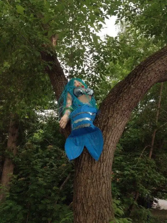 ЖКХ-арт в Екатеринбурге представил "У Лукоморья дуб зеленый". Кота посадили на кол, а русалку распяли на дереве