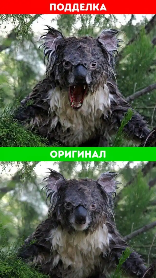 Оригинальная фотография мокрой коалы появилась в сети в 2009 году. С тех пор многие шутят, что животное на фото выглядит как персонаж из фильма ужасов. Конечно, нашлись и те, кто захотел подлить масла в огонь. Очередной мастер фотомонтажа ради шутки добавил на фото собачью челюсть, чтобы зверушка стала выглядеть еще страшнее.