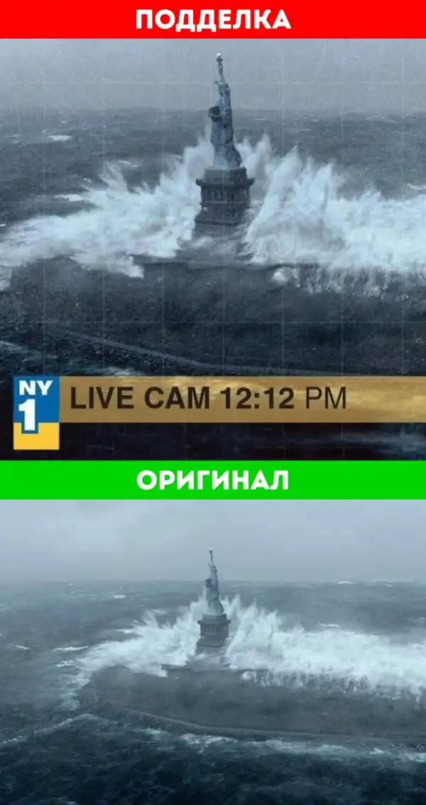 Вирусные фотографии распространяются по сети с сумасшедшей скоростью. Знатоки своего дела давно выяснили, что должно быть на фотографии, чтобы привлечь к ней максимум внимания. В 2012 году в сети появилась фотография статуи Свободы во время урагана «Сэнди», которая выглядела как скриншот с канала новостей. Снимок навел много шума, но оказалось, что кадр взят из художественного фильма.