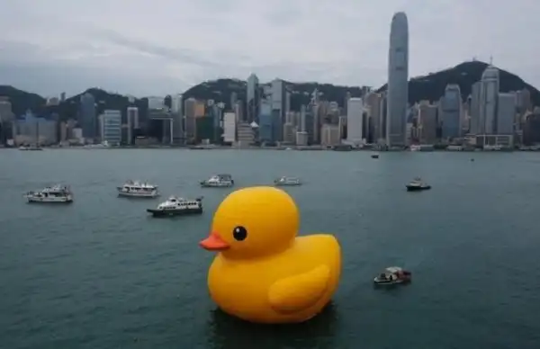 На первый взгляд кажется, что это проделки мастеров фотошопа. Но на самом деле гигантский утенок — это творение голландского художника Флорентина Хофмана. Утенок путешествует по миру: он уже побывал в Сиднее, Осаке, Окленде и Гонконге. На фотографии утенок плывет по гонконгской гавани Виктория. По словам художника, гигантская утка создана для того, чтобы вызывать улыбку на лицах людей.