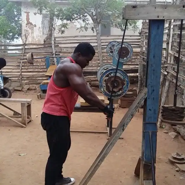 Знакомьтесь, это 27-летний бодибилдер Cамуэль Кульбила из столицы Ганы Аккры, который собрал самодельный тренажерный зал на своем заднем дворе. Парень сделал штанги, гантели, лавку для жима и стойку для приседа из подручных средств. Усердные тренировки, диета и хорошая генетика помогли парню набрать 15 кг сухой мышечной массы уже в первый год тренировок. Спустя еще 2,5 года тренировок он принял участие в чемпионате Ганы и занял третье место. Сейчас Cамуэль тренируется со своими друзьями в самодельном зале и за этим наблюдают сотни тысяч его поклонников в "Инстаграм".