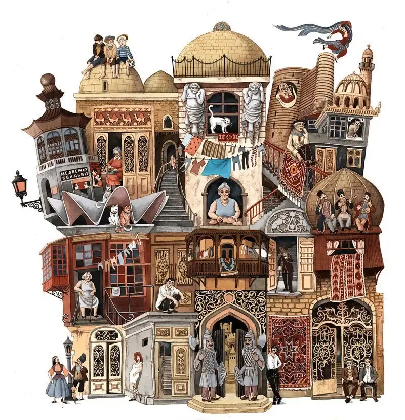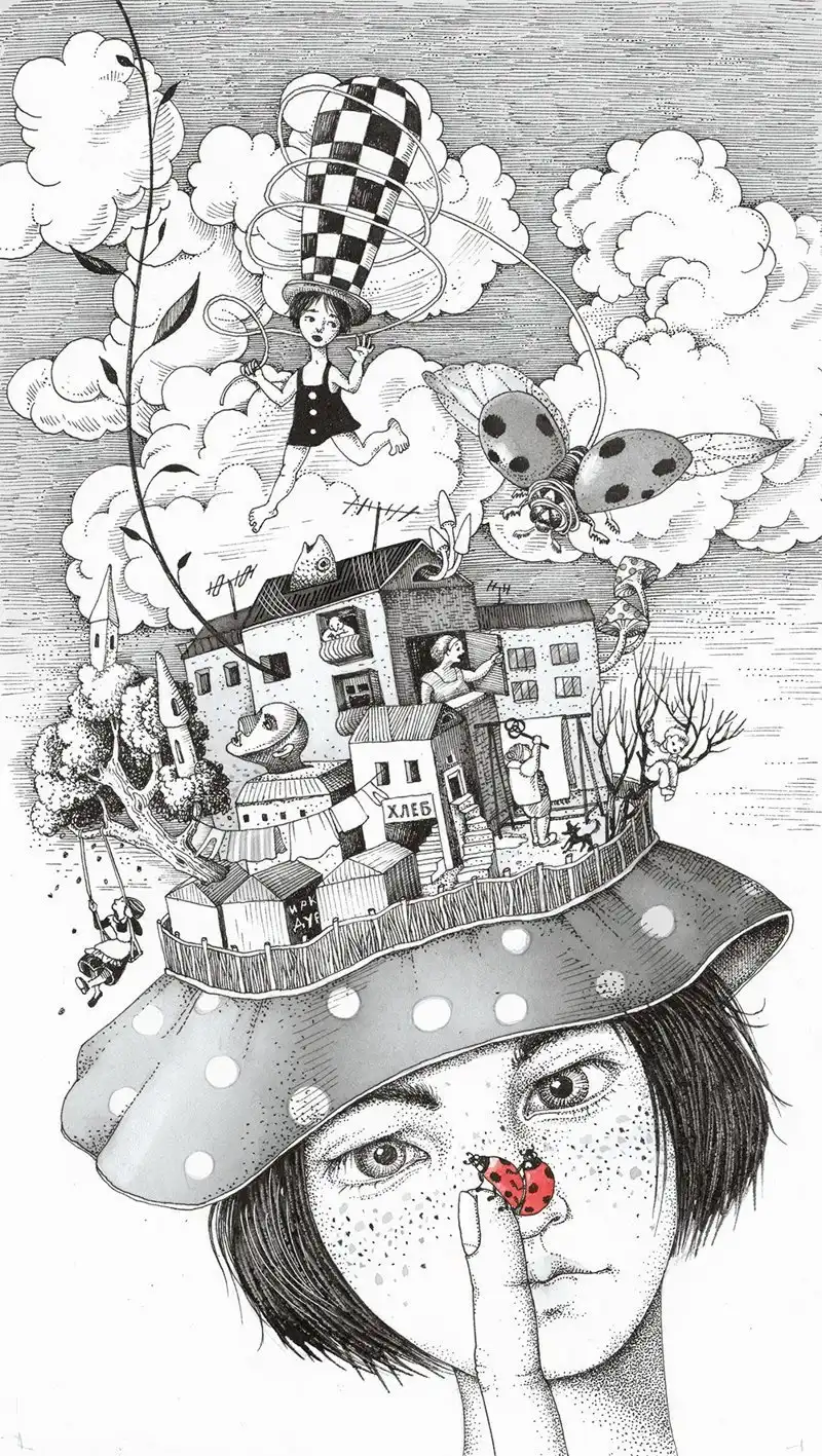 У художника Светланы Дорошевой много работ, построенных на воспоминаниях о детстве, которое прошло в СССР. И там нет места негативу – там чудесный, светлый мир обычного ребенка, выращенного с любовью.