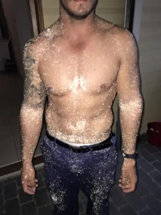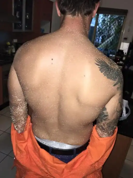 Пользователи сети стали делиться догадками на счет того, что это может быть. Одной версией было то, что это могут быть яйца паука Amaurobius similis. На самом же деле оказалось, что это частички светоотражающей краски. Дело в том, что этот парень работает на железной дороге и носит специальную одежду со светоотражающими элементами. Частички этой краски оказались не только на его теле, но и в его доме.