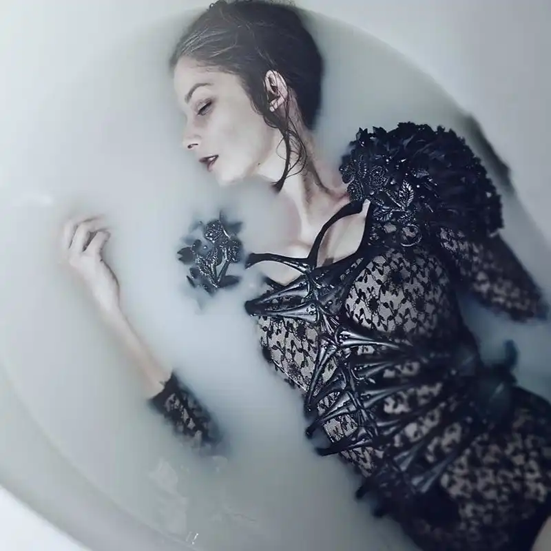 Художник по костюмам Агнешка Осипа из Польши закончила Академию искусств в городе Лодзь и всегда увлеклась тёмной мистической атмосферой. Её работы, среди которых корсеты, головные уборы, будуарные портупеи и многое другое, демонстрируют слияние между фольклорными орнаментами и женственностью костюмов. Агнешка работает со многими творческими людьми по всему миру и создаёт просто потрясающие вещи.