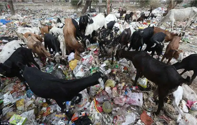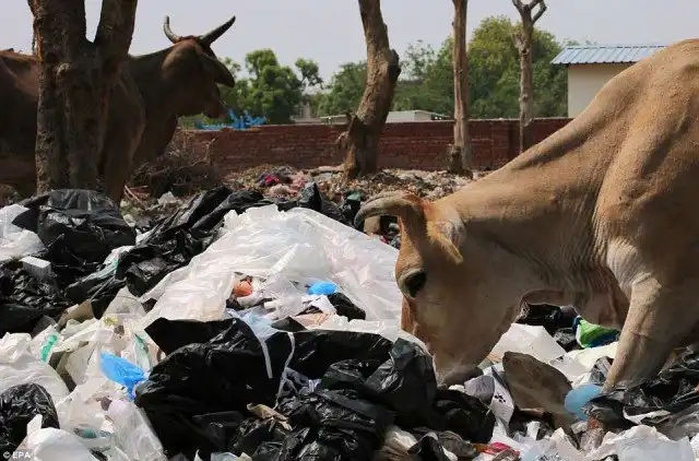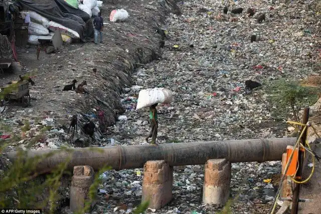 Столица Индии Нью-Дели считается одном из самых загрязненных городов мира. Особенно остро проблема мусора ощущается на окраине столицы, где в трущобах живут бедные люди. Повсюду валяются пластиковые пакеты, бутылки и другой мусор. Бродячие собаки, козы и коровы жуют пластиковые отходы, детишки также играют на кучах мусора.