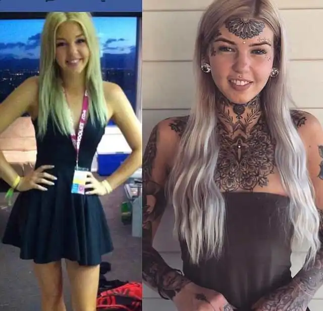 Жительница Австралии Эмбер Люк (Amber Luke) в 16 лет сделала свою первую татуировку и с тех пор стала одержима модификацией. Сейчас Эмбер 23 года, она потратила более 10 000 долларов на различные модификации своей внешности и изменилась так сильно, что ее трудно узнать.