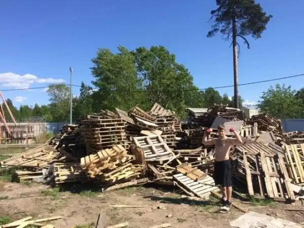 Доски для помоста шириной 85 см взяли из старых поддонов, которые предоставило одно предприятие.