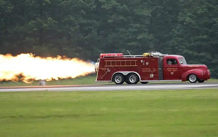 Скоростная пожарная машина с реактивным двигателем. Cкорость 655 км/час