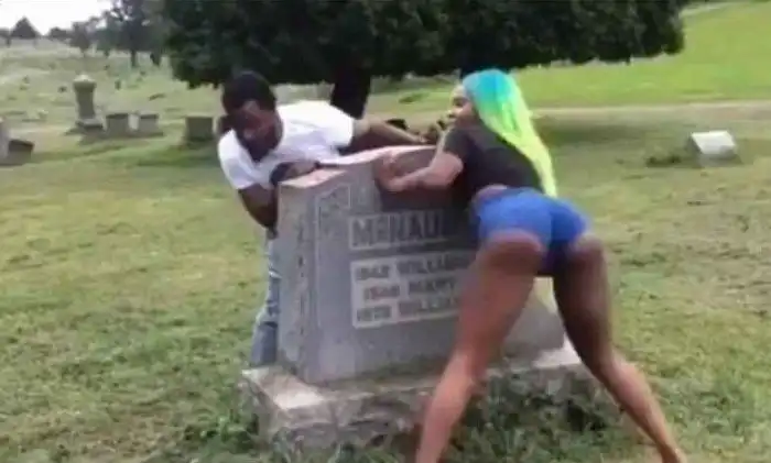 Деевушка, танцующая тверкинг на могилах, разместила это ото в соцсетях, заяви, что таково было их с парнем "смертельное желание".
