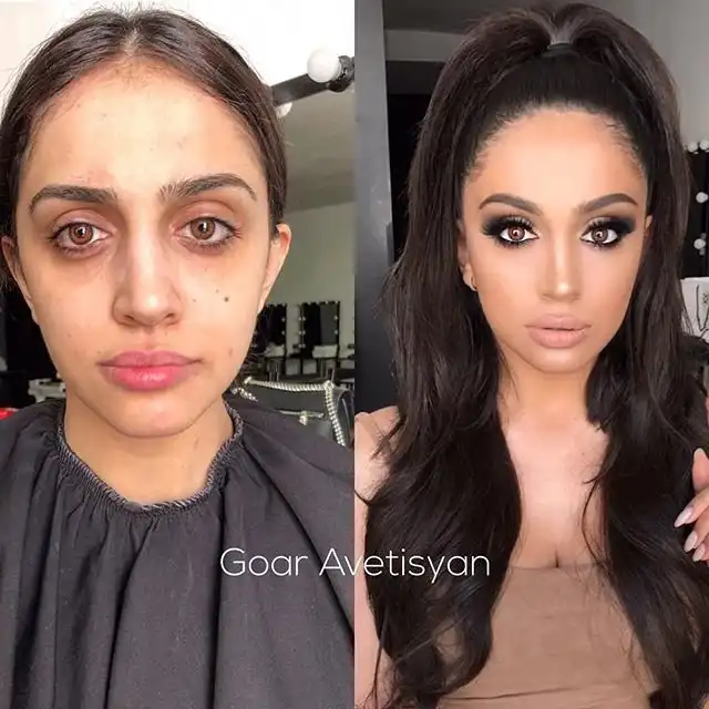 Сравнение девушек с макияжем и без