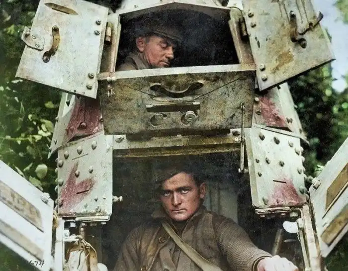 Британский электрик Ройстон Леонард - известный эксперт по превращению исторических черно-белых фотографий в цветные. На этот раз он представляет коллекцию цветных снимков танков времен Первой мировой войны. Тогда эти грозные машины впервые появились на полях сражений, внушая страх не только противникам, но и своим солдатам, откровенно опасавшихся бронированных чудовищ. И все же находились смельчаки, которые побеждали в бою против танка!