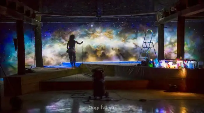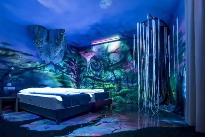 Венгерская художница Боги Фабиан (Bogi Fabian) занимается оформлением интерьеров, которые они превращает в самые настоящие произведения искусства. В большинстве случаев она пользуется люминесцентными красками, а потому ее работы можно увидеть только в темноте. Далее предлагаем вам взглянуть на комнаты, которые поражают воображение, когда остаешься в них ночью.