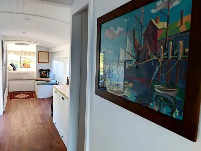 Картина маслом, найденная в Goodwill, украшает коридор. Думаю, такие завершающие штрихи помогают ощущать себя именно в доме, а не автобусе