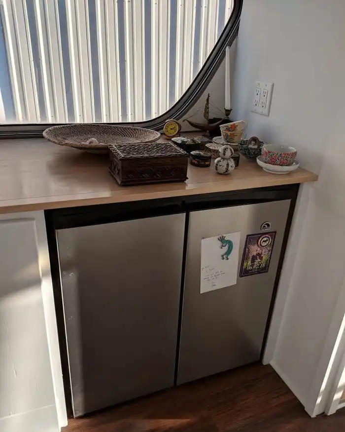 Компактный холодильник с морозильной камерой вместился под столешницей