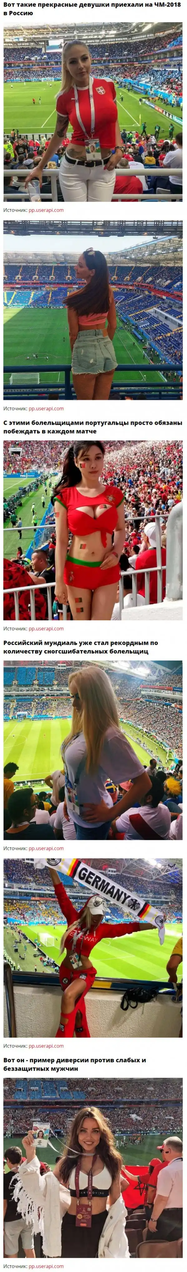 Что может быть лучше спорта? Только красивые девушки! А если совместить футбол и шикарных болельщиц, то получается взрывоопасная смесь, перед которой не может устоять ни один здоровый мужик. Главные виновницы домашних скандалов в этом посте!