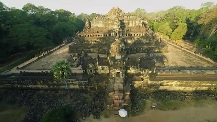 В центре Ангкора расположен храм Байон – буддийское святилище, состоявшее когда-то из 54 башен (сохранилось 37). Каждая башня имеет четыре лика, смотрящих в направлении четырех сторон света. Галереи храма украшены барельефами и фигурами, высеченными из камня – их тут сотни и тысячи, они посвящены религиозным сценам, реже – военным походам.