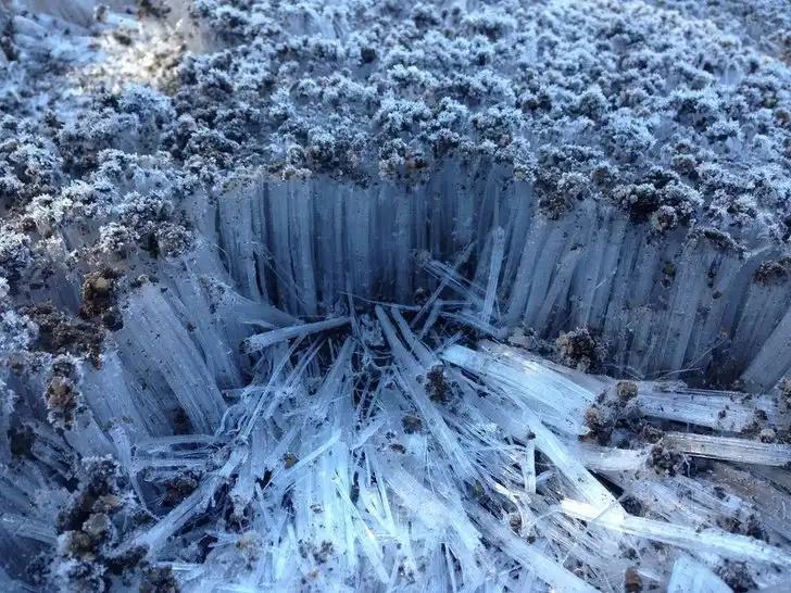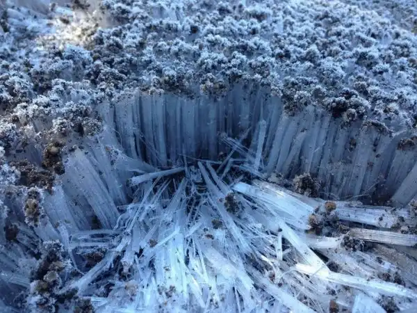 Трава заледенела после дождя и теперь выглядит как лес после бури