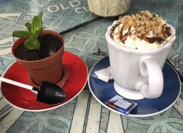 Это не цветочный горшок, а пудинг. А лопатка - ложка