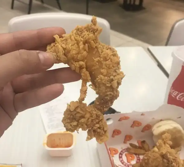 Кусочек курицы в панировке напоминает дельфина