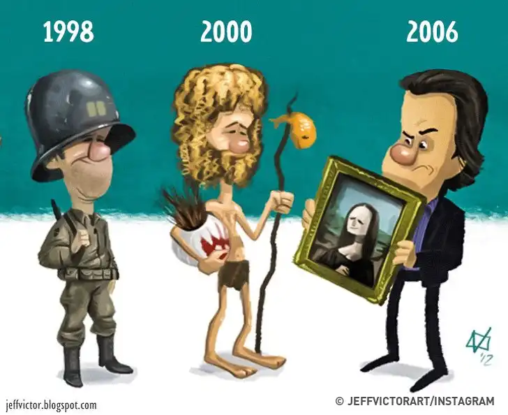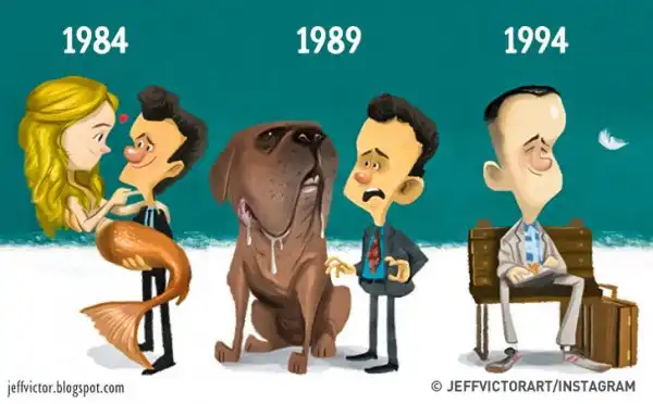 Художник нарисовал шаржи, в которых показал, как менялись звезды Голливуда от роли к роли