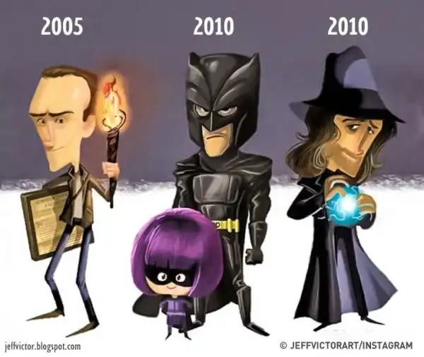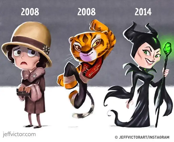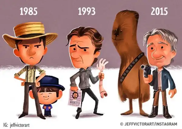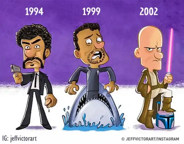 Иллюстратор из Лос-Анджелеса Джефф Виктор (Jeff Victor) рисует красивые шаржи, на которых оживают персонажи культовых фильмов. Серия его работ «Эволюция актеров» активно обсуждается в сети и с каждым днем становится популярнее. На рисунках художника — от 6 до 10 ролей, которые показывают, как менялось амплуа актеров за время их работы в кино, и мы выбрали самые яркие из них.